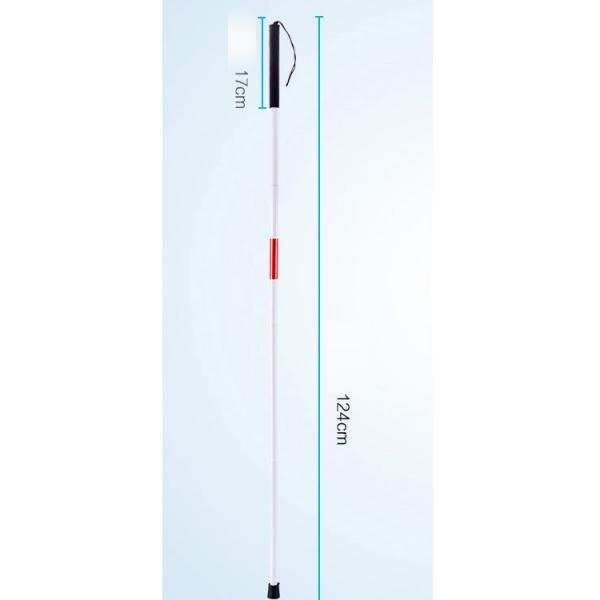 Aluminum alloy, light weightEasily folded into four sections,portable to carry, good to storage in your bag.Double elastic cord assembly for added White and red reflective for nighttime visibility. Antiskid rubber top and bottom