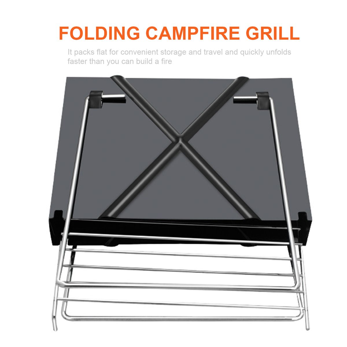 This portable grill can be used anywhere, with wood or charcoal, for ambiance, cooking, or grilling. It packs flat for convenient storage and travel and quickly unfolds faster than you can build a fire. This barbecue grill is perfect for camping, tailgating, and picnics.