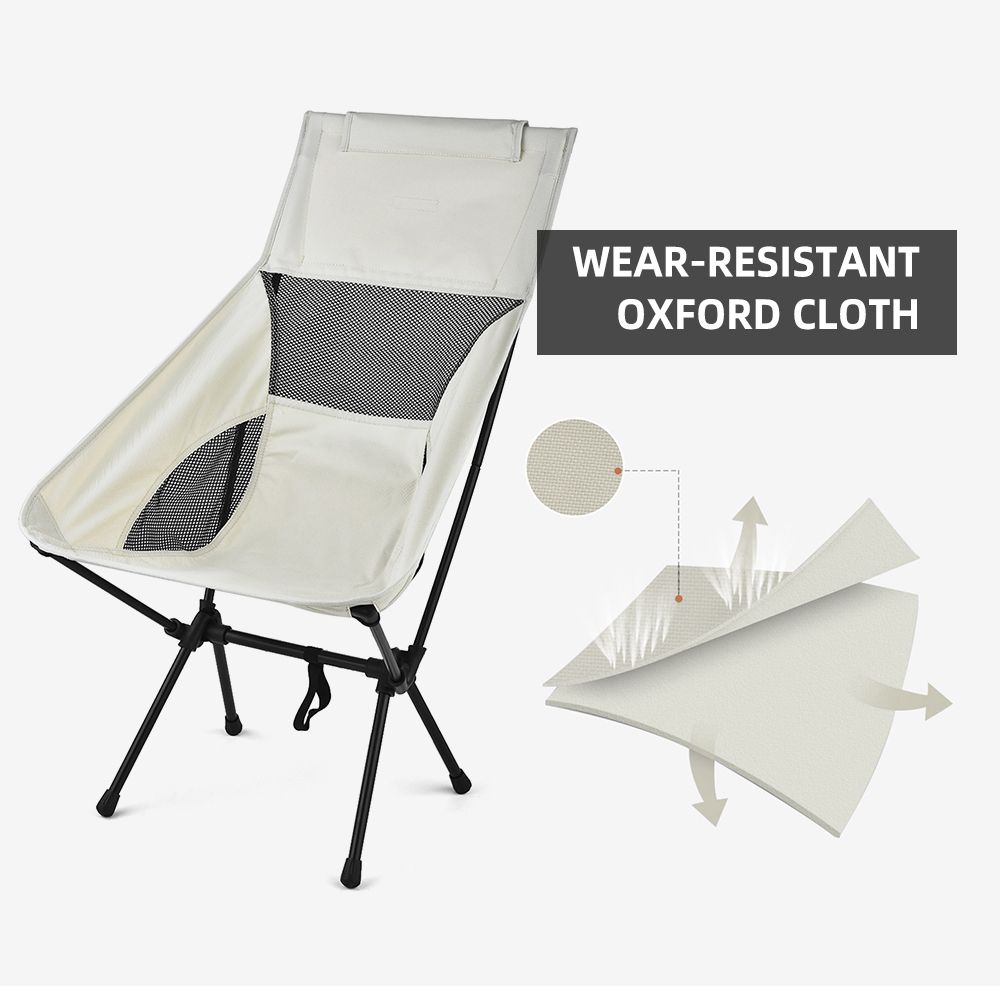 Solid construction with oxford cloth and steel frame makes this chair stable, resilient, and able to support 330lb.