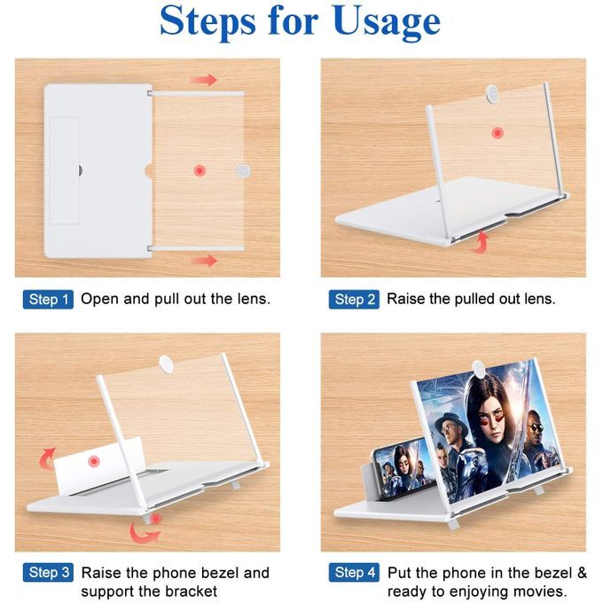 - 【Folding Design】- HD screen magnifier Storage type rotating folding design. If the height is not enough, height can be adjusted with the ring stand. Super slim when folded and also can be carried around in your bag. Suitable for indoor, camping, journey, leisure, anywhere and etc.