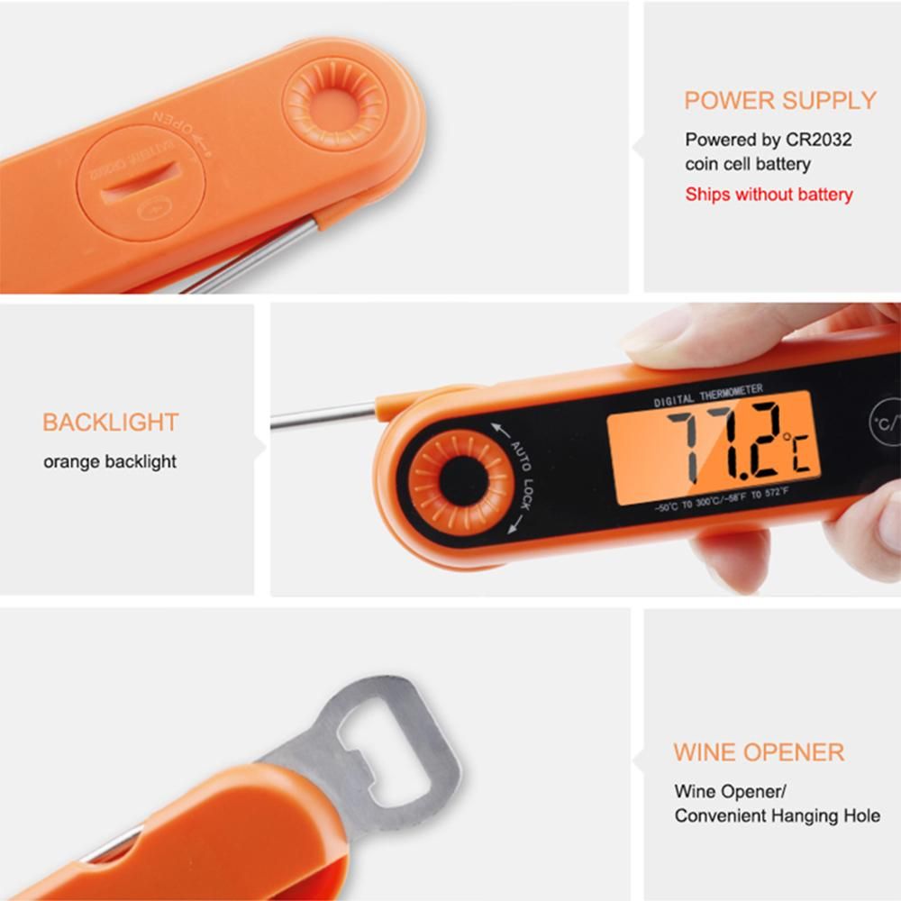 Buy Folding Food Thermometer Kitchen BBQ Electronic Thermometer with Wine Opener Barbecue Meat Temperature Measuring Instrument 304SS Probe -50~300°C LCD Digital Thermometer Cooking Thermometer with Backlight in Nigeria