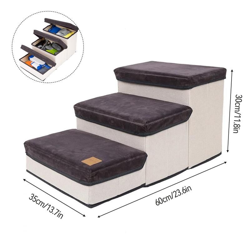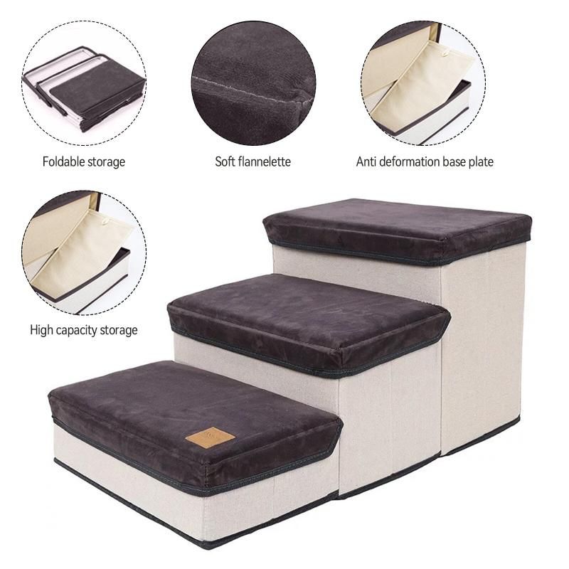 - Each step of the dog stairs has storage space, which is not only a dog's steps, but also a storage box for dog objects. The large capacity can put dog clothes, toys, blankets and other items in it.