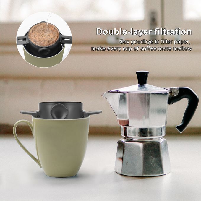 Features:Double-layer filtration: The double micro-mesh design allows you to get a precise coffee taste with less sediment and a fuller coffee flavor.