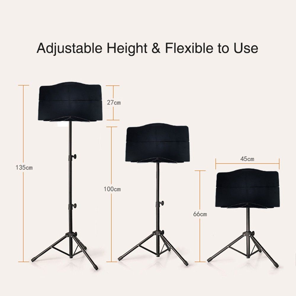 Metal music stand adopts thicker steel pipe, which increases load capacity of the stand and makes it more stable to use.