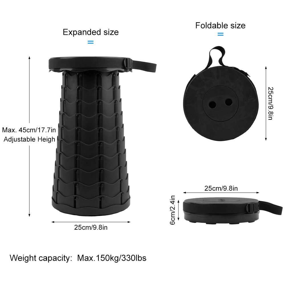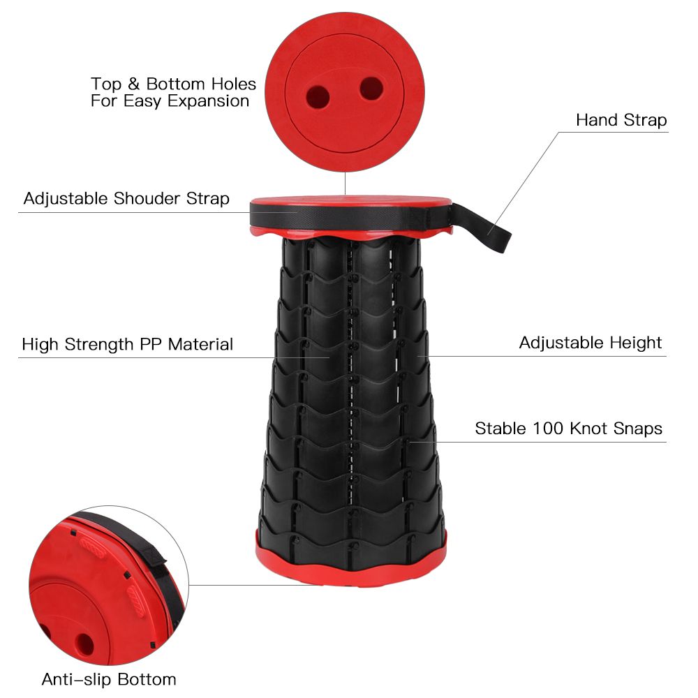Retractable chair with telescopic 10 segments,and the height could be adjusted continuously,perfect for both adults and kids.