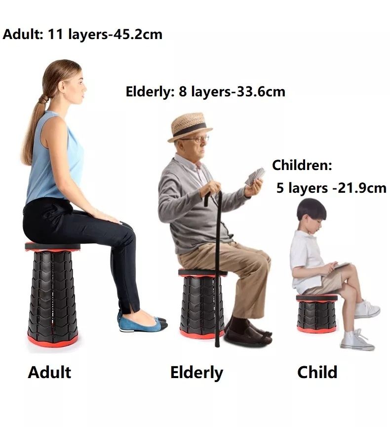Retractable chair with telescopic 10 segments,and the height could be adjusted continuously,perfect for both adults and kids.
