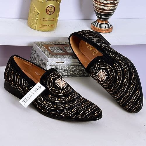Buy Folletel Men Shoe With Black And Gold Stones in Nigeria