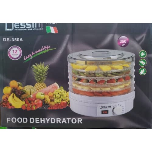 This Dehydrator includes 5 trays so you can create lots of tasty dehydrated foods at a fraction of the cost of commercial food dehydrators. Dries continuously for up to 36 hours. Digital temperatures settings provide accurate drying times and temperatures to make it super easy for you to start creating delicious dried foods. Make beef jerky and healthy dried fruit snack while saving tons of counter & pantry space. Features five nesting trays for a substantial reduction in storage space. We take the quality of our products seriously so you can be confident that you & rsquo;re receiving safe, efficient, high quality appliance.Material - ABS plastic,5 transparent plate,Drying dabervis accelerator,Temperatoris range of different products in order to regulate the temperature,Automatic switching functionPower - 350 watts.Temperature 35 - 70 & deg;