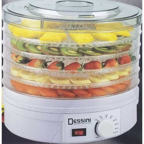 Multi-Tier Kitchen ApplianceDehydrates Food for Enhanced PreservationScientifically Tested to Increase Food Shelf LifeEasy, Single Button Operation and Nutritious ResultsFaster & More Efficient Alternative to Food DehydrationEffectively Dries Food by Removing Moisture ContentGreat for Food Storage: Drying Causes Food to ShrinkFood Reconstitution: Food Absorbs Water & Swells to initial SizeDehydration Retains up to 97% of Vitamins & MineralsHealthier Choice Alternative than Canning or FreezingYour Food Maintains Nutritional ValuePrepare Healthy Snacks for All AgesDries Your Food to Reduce SpoilageStain Resistant & Easy-to-CleanSimple One-Press Button OperationReaches Maximum Temperature of 180 & deg; F(5) Tier Trays for Enhanced Air-FlowHigh-Heat Circulation Travels Through Each TrayHeat Resistant and Dishwasher Safe TraysWorks with a Wide Variety of FoodsMeat, Fish, Poultry, Fruits, Vegetables and MoreUse for Meats to add in Stews, Soups, etc.Perfect for Making Oil-Free Veggie ChipsMake Home-Made Beef Jerky