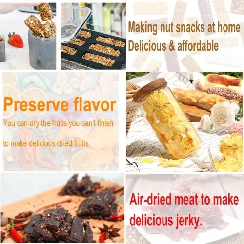 emperature design: dehydrator for food dehydration. Healthy and gentle storage. Simply place fruits, vegetables, meat, even flowers or pet food in the tray to set the temperature- Temperature adjustment: After turning the switch, just adjust the temperature from 35 to 70 degrees Celsius to use it as usual, and it is easy to use- LARGE SPACE: Upgraded 5-layer design, large space, save your time- APPLICABLE FOR ALL FOOD: Put vegetables and fruits in the physical dryer to live a healthy life suitable for breakfast, fat refilling, weight loss and more- EASY TO OPERATE: Simply place fruits, vegetables, and meat on the tray, set the temperature and heat up. Next, you can dry your food moisture while still trapping the flavor- power: 650w