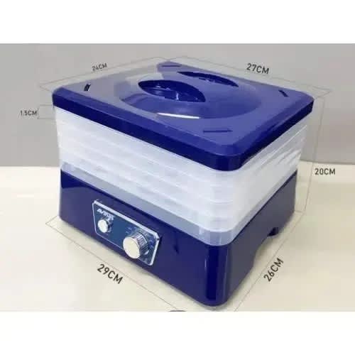 This Dehydrator includes 5 trays so you can create lots of tasty dehydrated foods at a fraction of the cost of commercial food dehydrators. Dries continuously for up to 36 hours. Digital temperatures settings provide accurate drying times and temperatures to make it super easy for you to start creating delicious dried foods. Make beef jerky and healthy dried fruit snack while saving tons of counter & pantry space. Features five nesting trays for a substantial reduction in storage space. We take the quality of our products seriously so you can be confident that you & rsquo;re receiving safe, efficient, high quality appliance.Material - ABS plastic,5 transparent plate,Drying dabervis accelerator,Temperatoris range of different products in order to regulate the temperature,Automatic switching functionPower - 350 watts.Temperature 35 - 70 & deg;