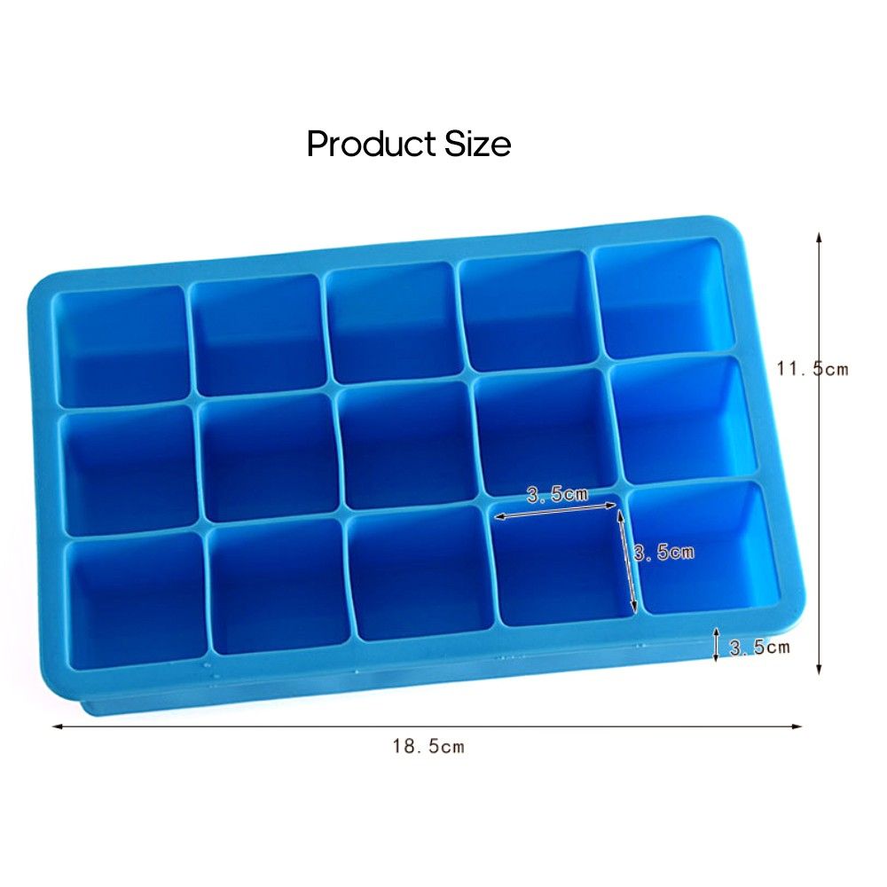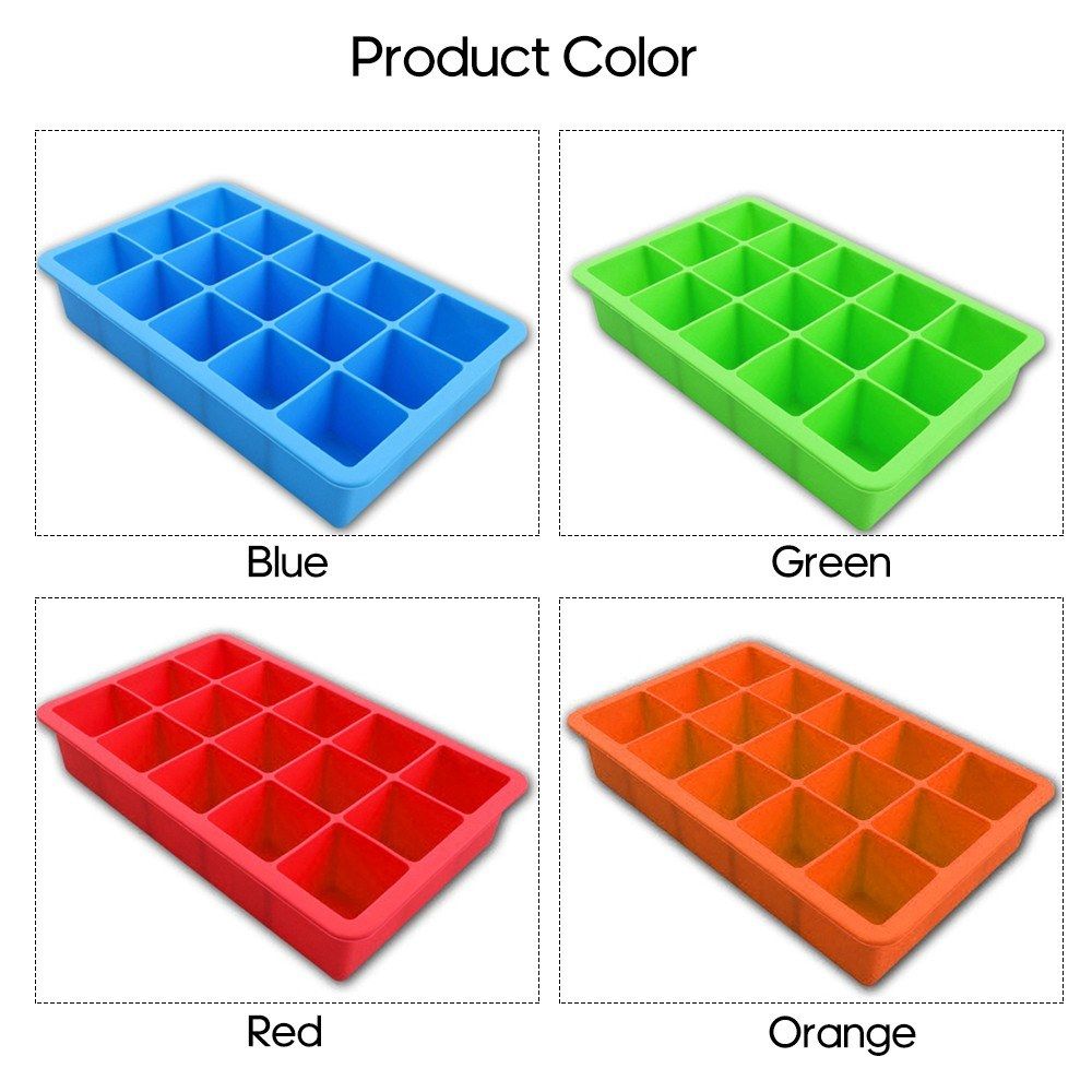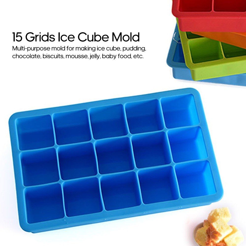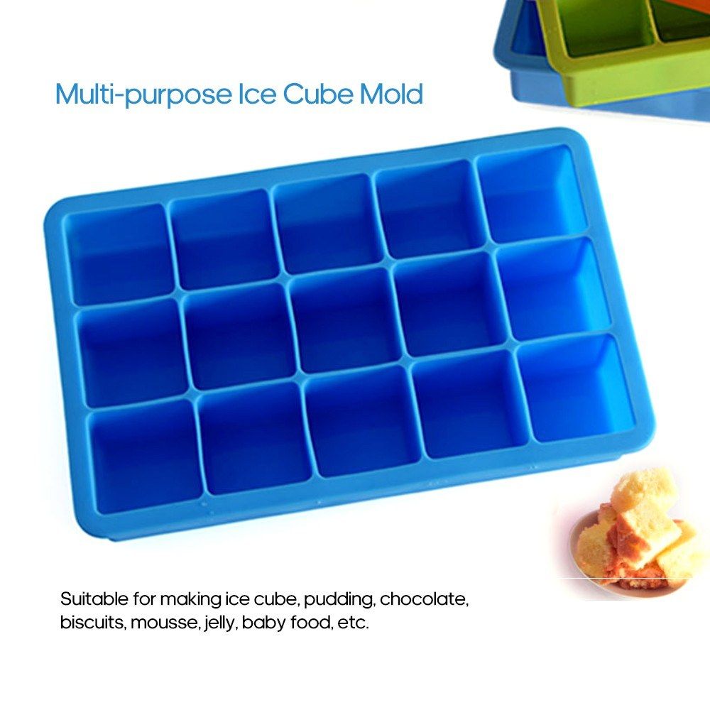 The ice cube tray is made of food grade silicone material, safe and non-toxic, total 15 grids in one tray. Multi-purpose mold for making ice cube, pudding, chocolate, biscuits, mousse, jelly, baby food, etc.
