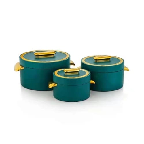 3 Pieces Ambiente Insulated Casserole King Set 6000ml 8000ml 10000ml.This is an elegant set of 3 insulated casseroles, also known as 'hot pots'.They are incredibly useful in maintaining the temperature of food.Hot food can be kept warm for up to 5 hours. Likewise, cold food can be kept cool for up to 5 hours.The pots themselves are made from special virgin food-grade plastic, with a high-quality stainless steel inner lining.