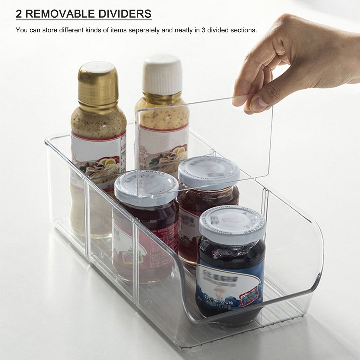 2 Removable Dividers: You can store different kinds of s seperately and neatly in 3 divided sections. For example, you can store seasoning, drinks and snacks seperately without mixing them.