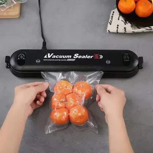 Features:Economical and Practical:Vacuum Food Sealer eliminates freezer burn, reduces spoilage and food waste, and effectively increases food shelf life, making food still fresh and flavorful.Good Healper for Cooking:Cooking and meal preparation becomes easier. Using Sous-Vide cooking method to acheive excellent results when preparing food. It also saves space of your freezer with the airtight bag packaging.Easy to Operate:Do vacuum packing and sealing with one simple press, sealing food in seconds, offering you a quick, easy and inexpensive way of preserving your food.Compact & Slim Design:Compact size and lightweight design for easy store. It can be placed on any kitchen counter top. Be careful with the heated sealing edge, not recommended for children to use.Requirements on Film / Bags:The Vacuum Sealer fits up to 27cm width vacuum sealer bags and rolls with dots, knobs or grooves on one side and can preserve all types of food.Note:1. When placing the bag in the vacuum sealer, the end of the film must be positioned in front of the rear limitation webs and the lateral limitation webs (just inside the bottom sealing ring).2. Please keep children and animals away from the electric device at all time.3. The welding wire becomes very hot during operation. Do not touch it.Specifications:Two Modes: Seal Only, Vacuum & SealSealing Width: 27cmVacuum Degree: -60KpaRated Voltage Power Supply: AC 100V-240V 50/60HzPower: 90WColor: BlackItem Size: 36.8 * 7.7 * 7.5cm / 14.48 * 3.03 * 2.95inItem Weight: 420g / 14.80ozPackage Size: 37.3 * 9.9 * 8.1cm / 14.68 * 3.89 * 3.18in