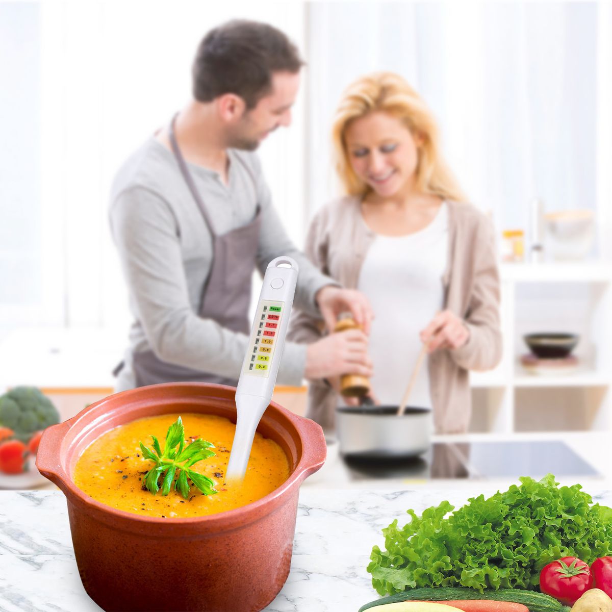The food salinity tester is a precision instrument for testing the salinity value of a solution.(Note: It can only test for liquids, not for foods without soup.)