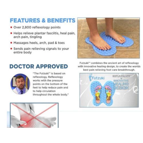Will naturally massage the heel, arch, pad, and toes on both feet.Sends pain relieving signals throughout your body.It helps to relieve pain in your feet and in your back.Over 2800 Reflexology PointsPerfect for home, in the office, or even watching TV!Made of durable latex-free material.Washable. Eliminate tension, relax your body and mindGreat for home-based strength training.Foot Health Blood CirculationAcupressure for blood flow and fatigue recoveryGood blood circulation due to acupuncture effectSpecification:Material: TPEDurable MaterialSize:app. 37x62cmNote:Transition: 1cm=10mm=0.39inchNo retail package.Please allow 1-2cm error due to manual measurement. pls make sure you do not mind before you bid.Due to the difference between different monitors, the picture may not reflect the actual color of the item. Thank you!Package includes:1 x Foot Massaging MatWill naturally massage the heel, arch, pad, and toes on both feet.Sends pain relieving signals throughout your body.It helps to relieve pain in your feet and in your back.Over 2800 Reflexology PointsPerfect for home, in the office, or even watching TV!Made of durable latex-free material.Washable. Eliminate tension, relax your body and mindGreat for home-based strength training.Foot Health Blood CirculationAcupressure for blood flow and fatigue recoveryGood blood circulation due to acupuncture effectSpecification:Material: TPEDurable MaterialSize:app. 37x62cmNote:Transition: 1cm=10mm=0.39inchNo retail package.Please allow 1-2cm error due to manual measurement. pls make sure you do not mind before you bid.Due to the difference between different monitors, the picture may not reflect the actual color of the item. Thank you!Package includes:1 x Foot Massaging Mat