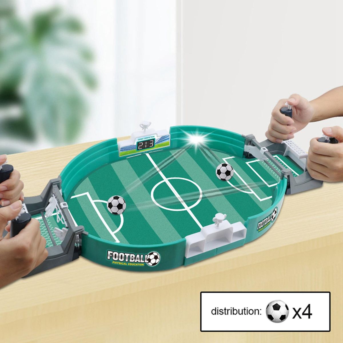 EASY TO PLAY: Just push the handle, fexible goal for defending and attacking, goal, who will the winner, 2 players.