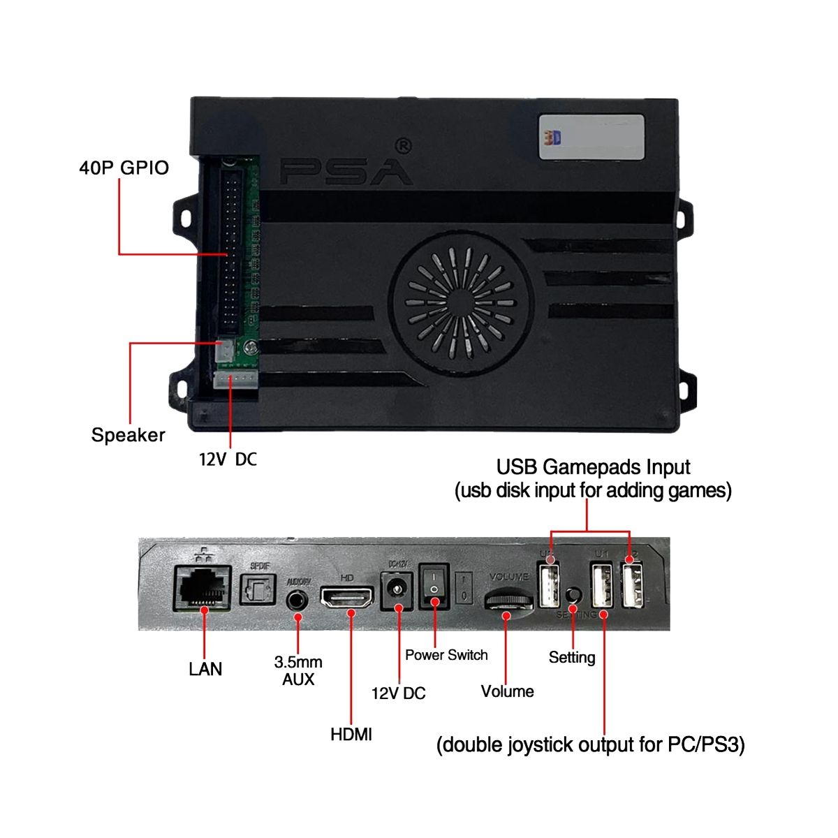 [Multifunctional SYSTEM]: For 3D come with the Powerful 3D system. Better user interface and user experience. HD 1280x720P Resolution via -compatible/VGA. ·Pause/Exit in games; ·Save/Load Games; ·Hide Games; ·Favorite GameList; ·Search Games; ·Recent games; ·External USB controller; ·multiplayer games(4 players); ·Customizable Buttons; ·Game Classification; · Image Enhancement; ·One Key Switch ·Language(English/Chinese/Korean/Japanese/Spanish) etc.