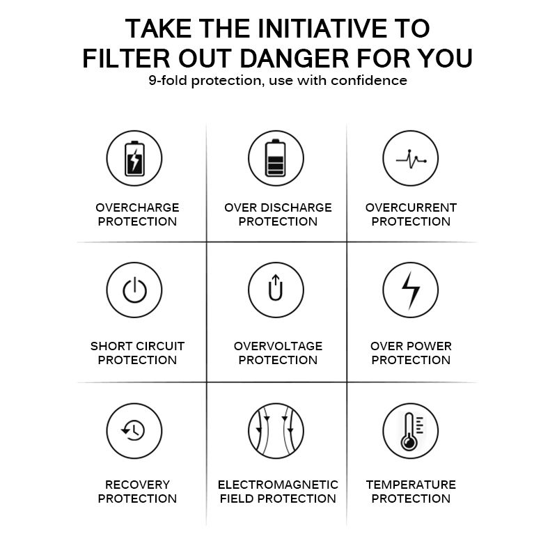 - 【Safe & Reliable】Built-in over-charging, over-heating and short-circuit protection