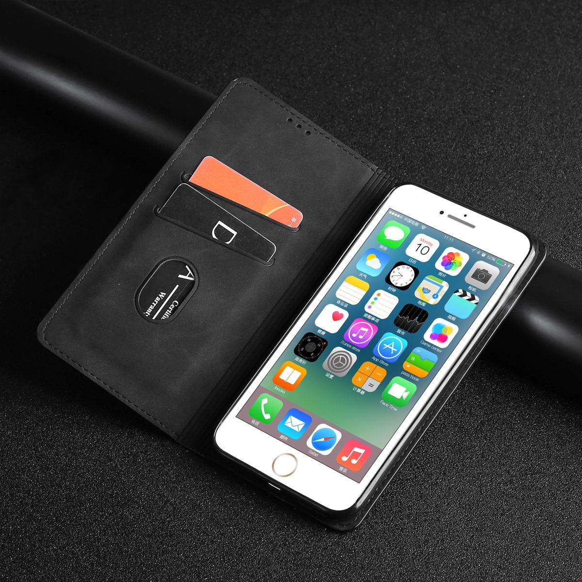 4. 2 slots for ID Cards,Flip cover automatic adsorption.