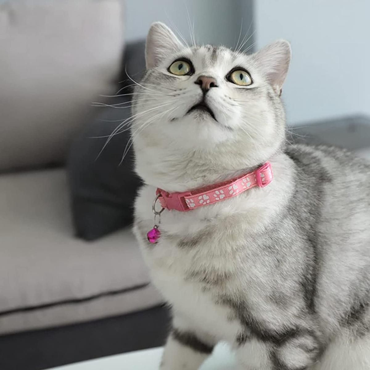 2Pack Collars: 1*Reflective strap and 1*reflective paw print . Made of soft nylon material. The reflective design lets your can be seen clearly in dark environments (both breakaway clasp )