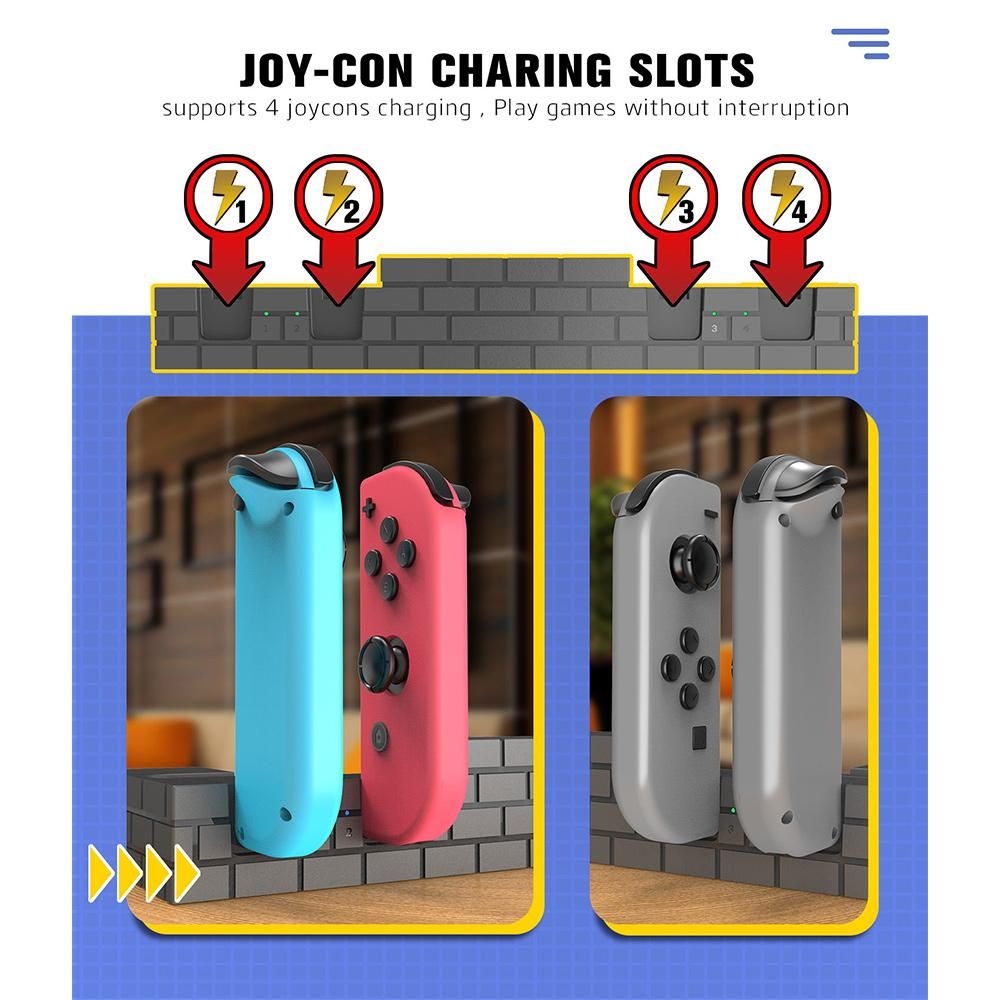 2. This product has 4 charging slots, which support charging 1 to 4 controllers at the same time;