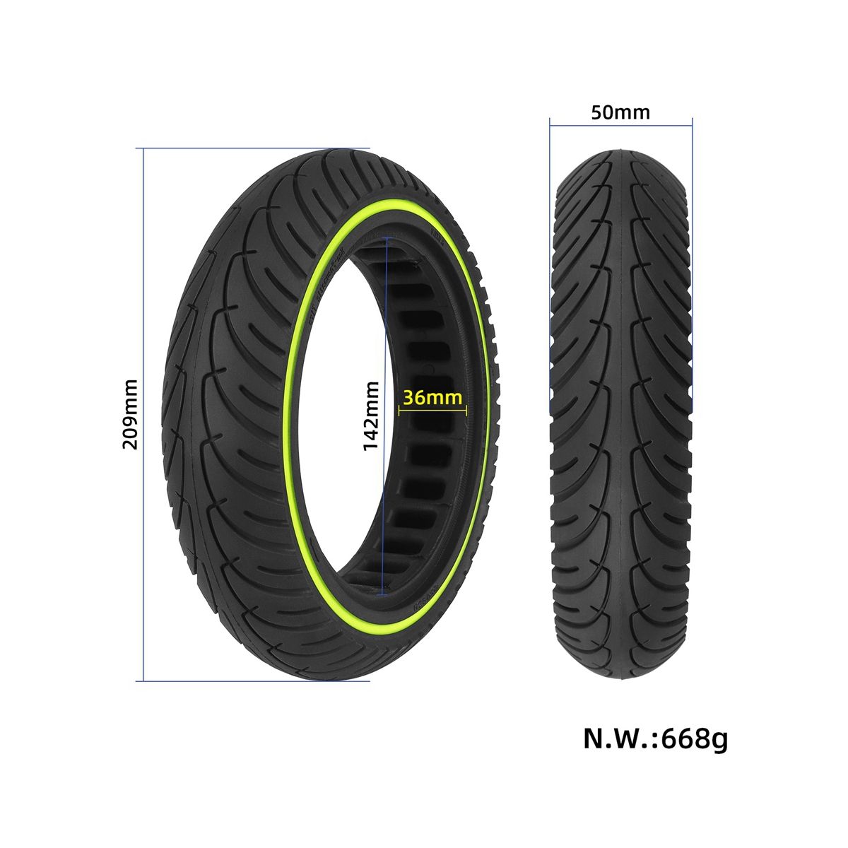 size:Outer diameter: 209mm, Inner diameter: 142mm, Tire thickness: 50mm Package Contents:
