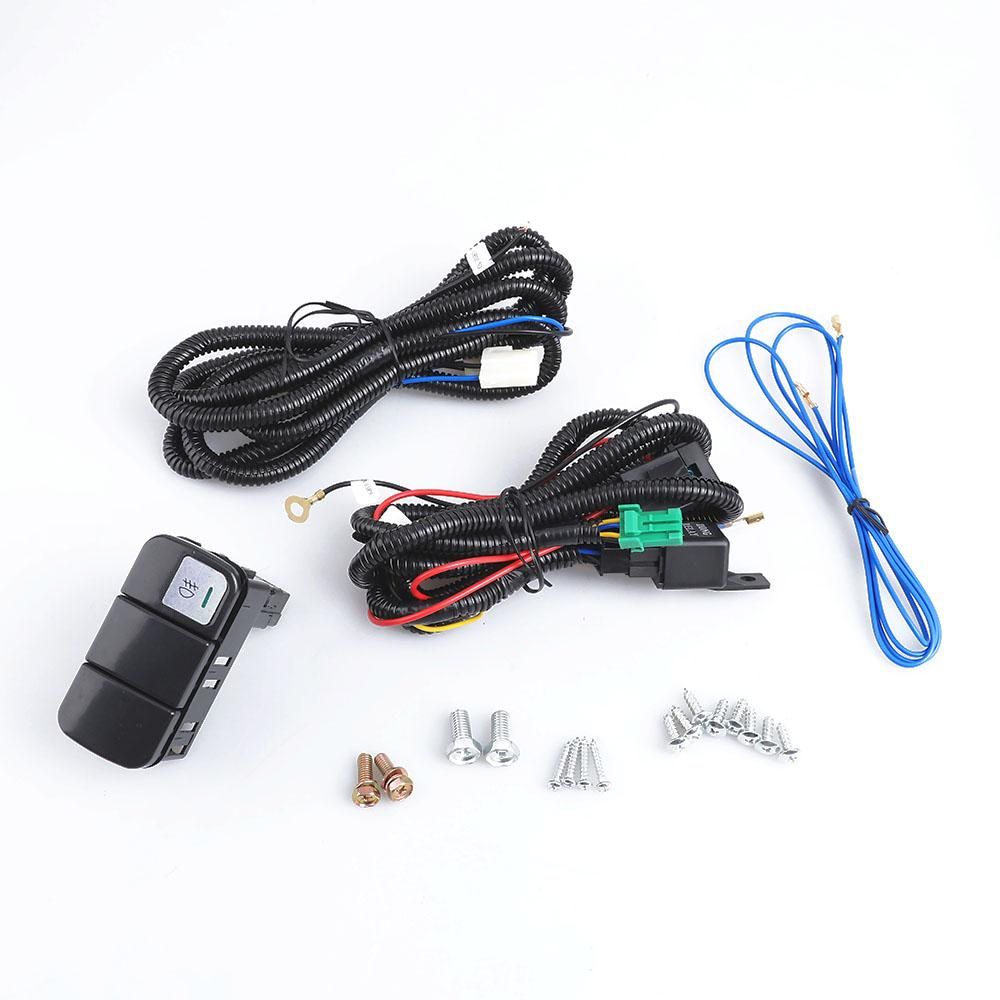 1 pair of fog lights, pre-aembled wiring harne, On/Off switch, relay, mounting bracket.
