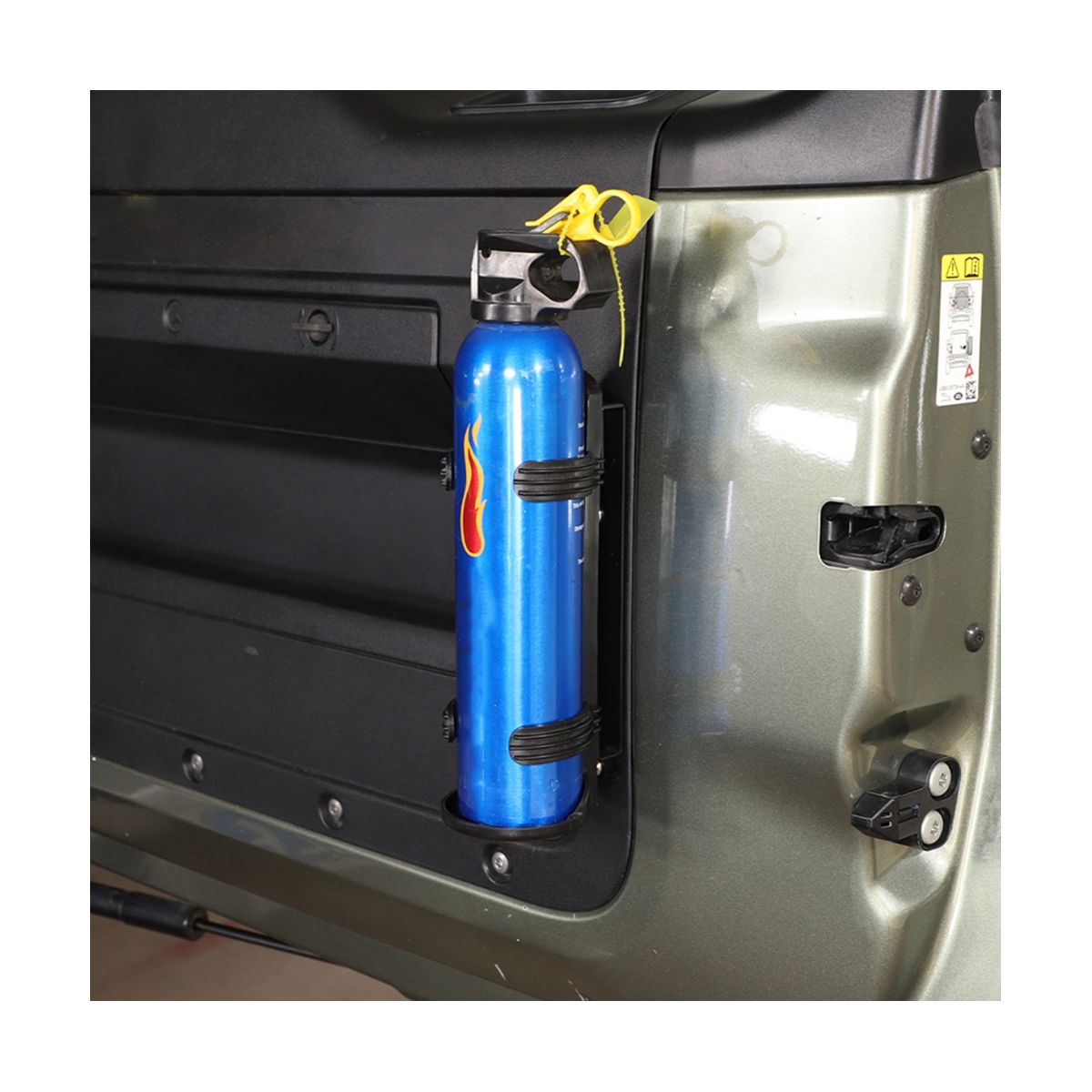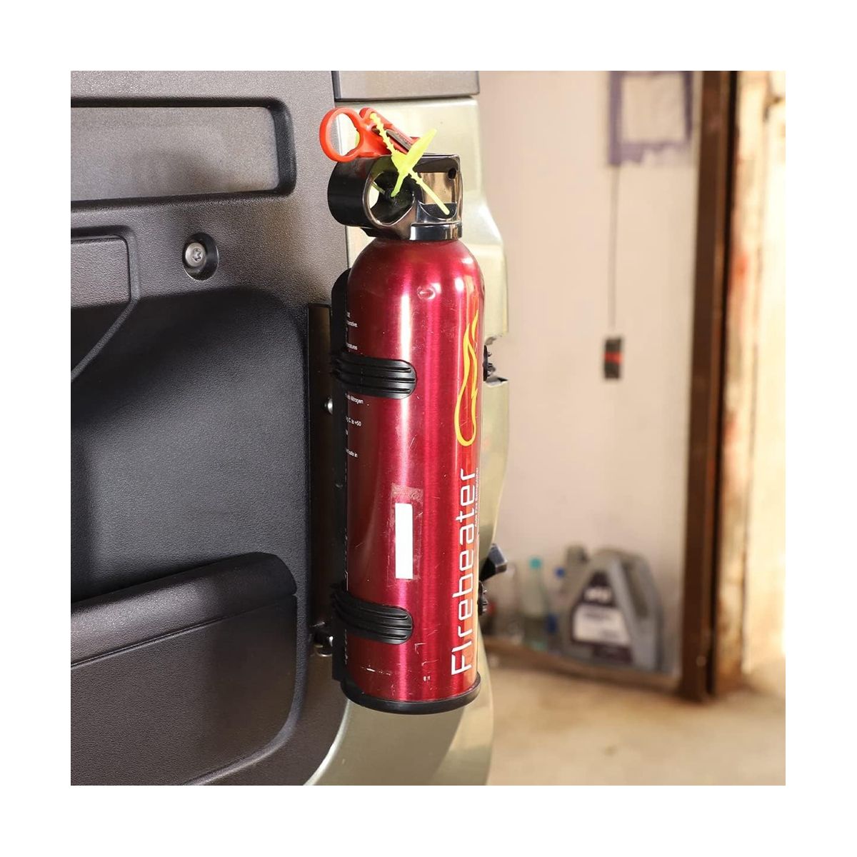 [Professional Design]: The product is reinforced by carbon steel and 2 ABS clips. Prevents fire extinguishers from falling off, more grip and better grip when off-road. Fits standard 2.5-3 lb or other similar sized fire extinguishers.