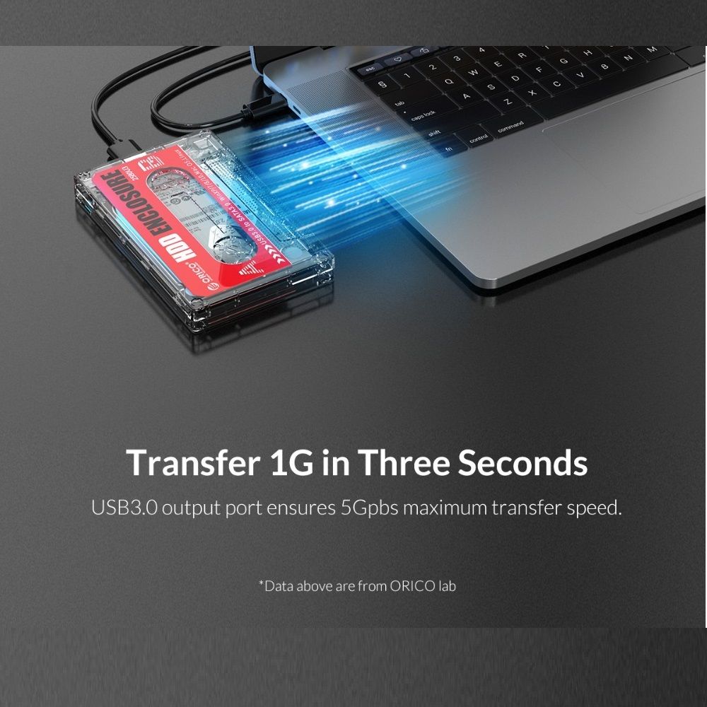 Product Model : 2580U3Product Material : PC materialProduct Color: TransparentProduct Size : 128mm(L)*80mm(W)*14mm(H)Output Interface : USB3.0 Micro-BTransmission Rate : 5GbpsData Cable : USB Type-A to Micro-B, 0.5mSupport Capacity : Up to 4TBInstallation Method : Tool-free, sliding cover disassemblySupport System: for Windows / OS / Linux