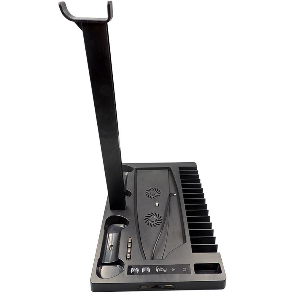 Game Console Multi-Functional Fan Cooling Stand Dual Charging Interface Dock for PS5 Disc Digital Edition Universal with Game Disc Handle Headphone Storage Rack Bracket Game Accessories