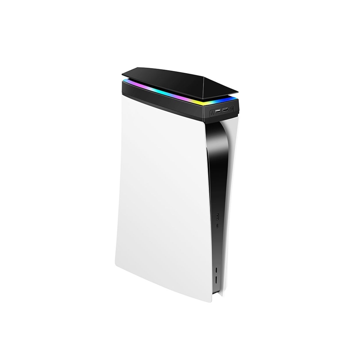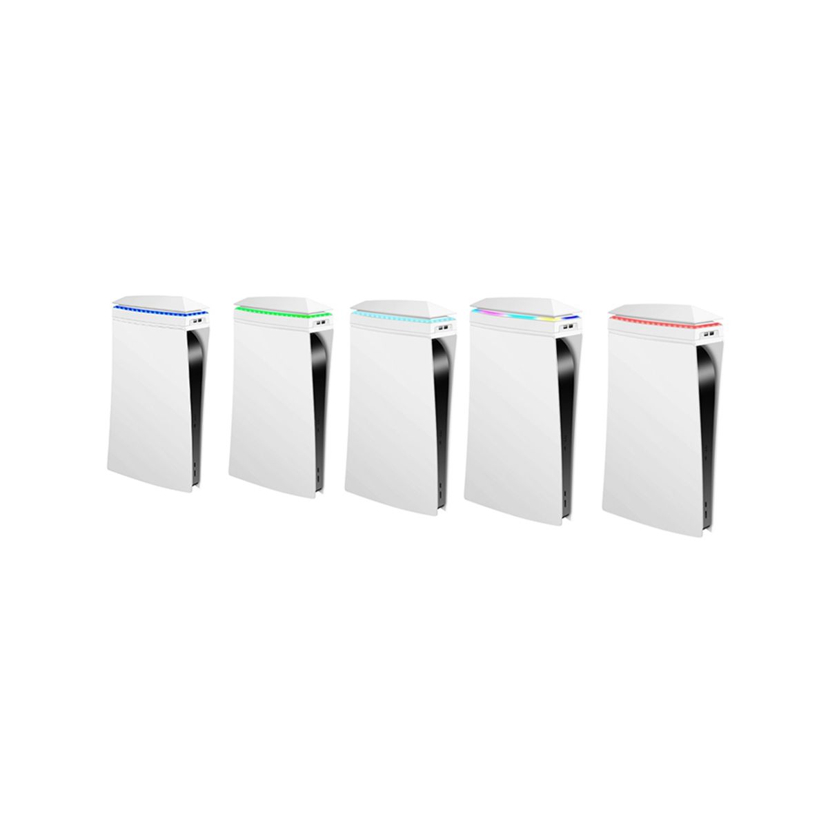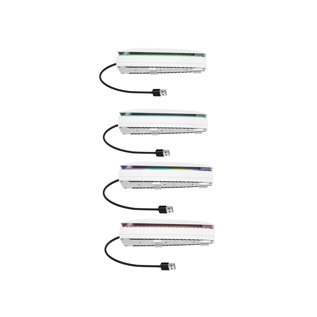 for PS5 Cooling Fan Supports Colored Lights, And Can Change The Light Color Through Independent Touch Switch. The First Mode Is The Running Water Mode, The Second Mode Is The Horse Running Mode, The Third Mode Is The Breathing Light Mode, The Fourth Mode Is The Dead Blue Mode, The Fifth Mode Is Red, The Sixth Mode Is Green, And The Seventh Mode Is Dark Blue. The Light Bar Has A Memory Function, And When It Is Turned Off And Turned On Again, It Is The Same Color. The Fan Is The Main Switch, And The Light Bar Can Also Operate Separately When The Fan Is Off. You Can Use The Independent Touch Switches To Change The Colors You Like And Have More Atmosphere During The Game.