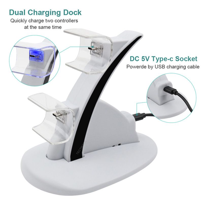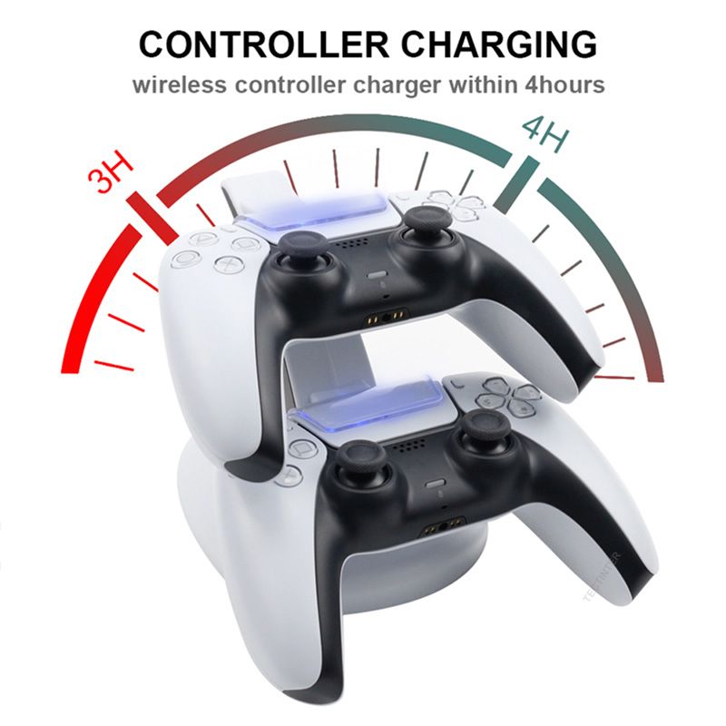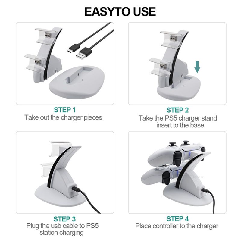 Dual Controllers ChargerCharging 2 controllers via USB C adapters without having to connect them to your PS5 console, saves your time and keeps your PS5 DualSense neatly on desktop