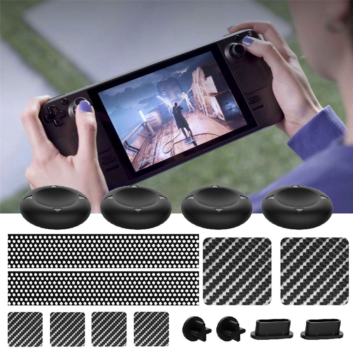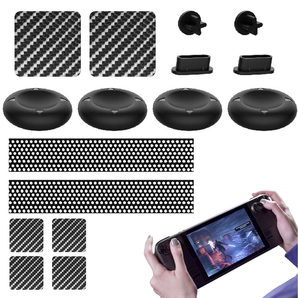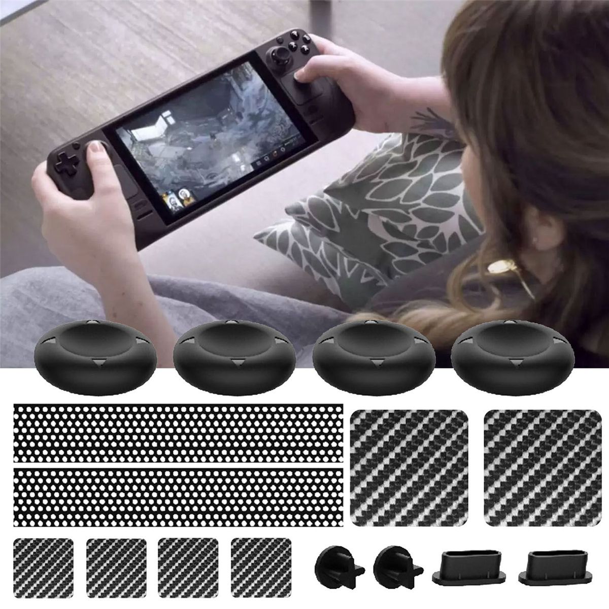 Detailed Information About The Product:Our game console dust plug set comes with on trackpad sticker and rocker silicone cap protection set.