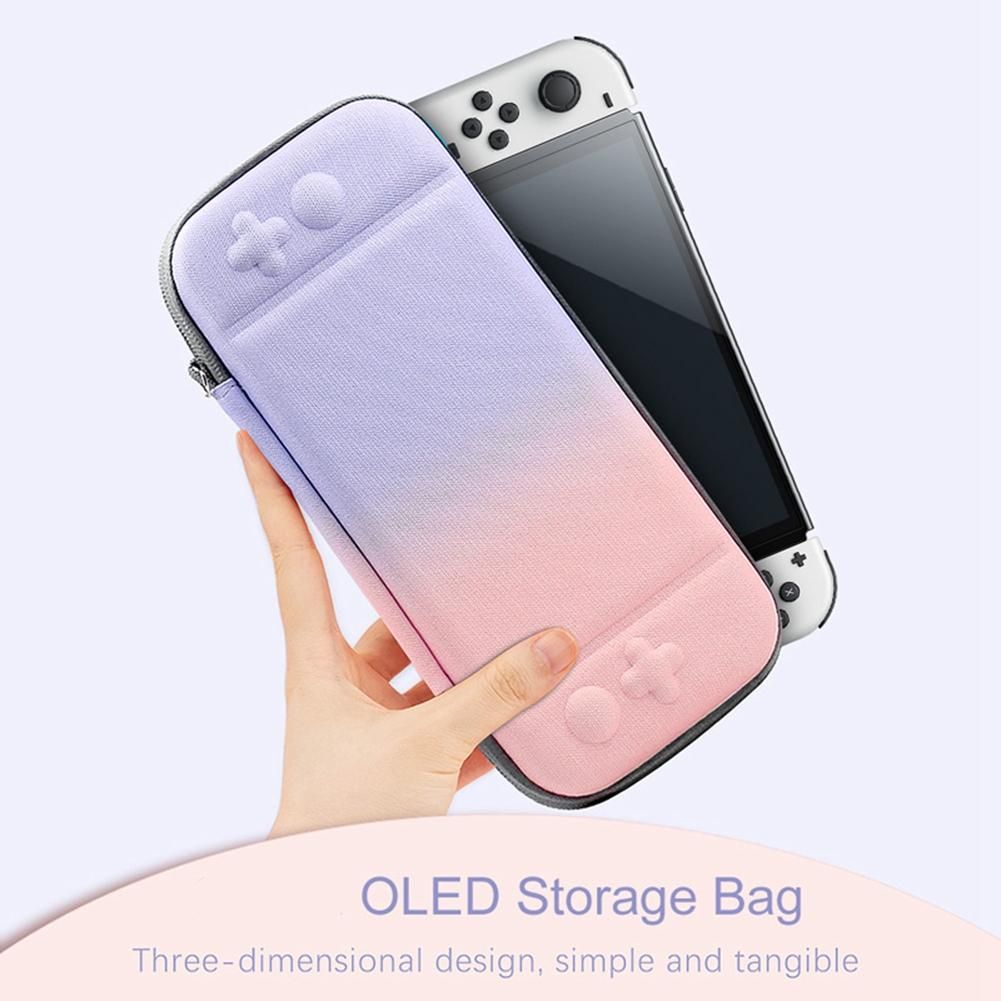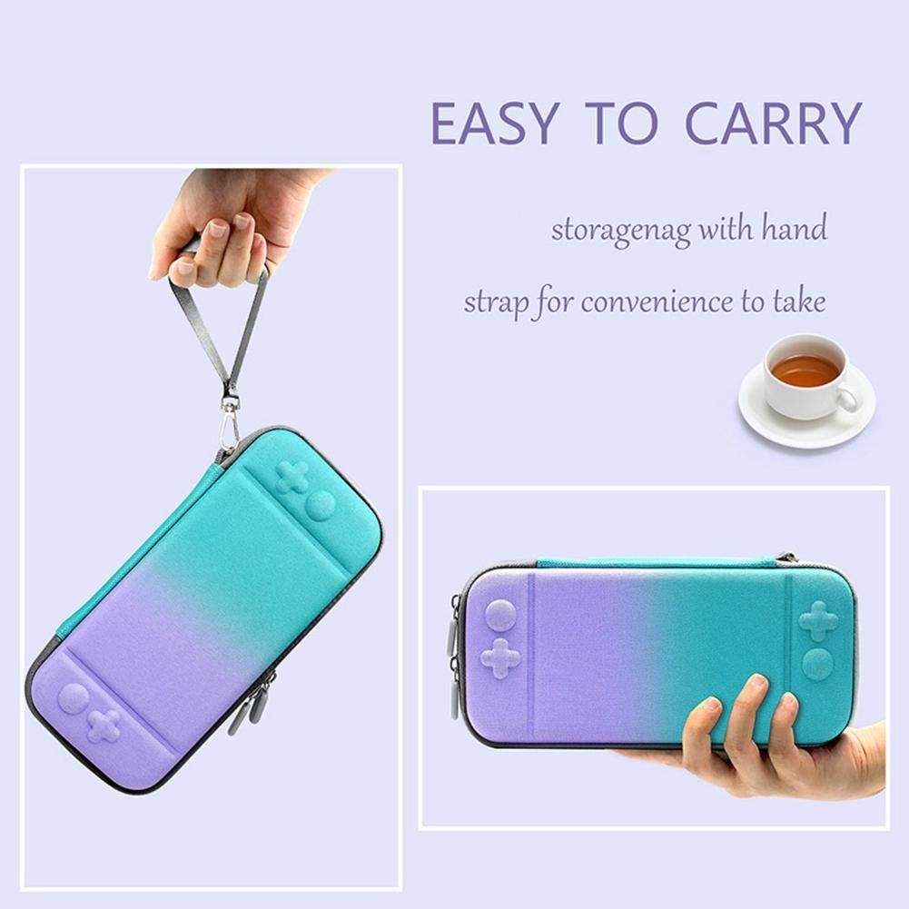 [For Nintendo switch case] the unique gradient appearance design storage package is specially designed for Nintendo switch OLED, making your new console more portable and convenient for travel. The unique handheld strap design is very suitable for carrying the console on the journey. It is made of lightweight and durable materials.