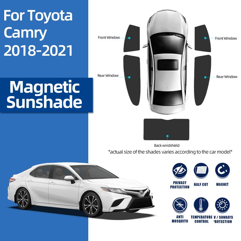 For Toyota Camry XV70 2018-2023 Front Windshield Frame Curtain Magnetic Car Sunshade Shield Rear Side Window Sun Shade VisorMaterial:PolyesterType:Side Window Sunshades/Front Windshield/Rear WindshieldColor:BlackSide:Custom MadePlace of Origin:ChinaApplicable Season:Four SeasonFeatures1.Reduce Harmful UV Ray2.Reduce sun glare. 3.Mesh Frame Design,Increase in-car privacy.4.Special car for special use5.Easy installation and remove (Magnetically snap on!).Some model vehicle windows need clip with double-side tape to insatll because of plastic made frame.6.It can prevent uninvited harmful insects especially mosquitoes, bee, etc from flying into the cars when the passenger's window winded down.NoticeAfter you take the order,Plz Left us message about your car model and year to us.If possible,we hope that you can take a photo about your car to us to Avoid sending the Wrong item to you!ShippingPlease Confirm Your Address Before Payment.We Will Send The Items Within 3 Business Day Once Your Payment Is Complement. (Holidays May Be Extended)FeedbackPlease Do Contact Us Before Leaving A Neutral Or Negative Feedback. As A Series And Responsible Seller, We Will Try Our Best To Solve Your Problem. Hope You Like Your Purchase Here. Your Comment Is Very ant In Our Business Success.If You Are Satisfied With Your Purchase And Our Service, Please Take A Minute To Leave Us A Positive Feedback With An Overall Detailed Selling Rating (DSR) of 5