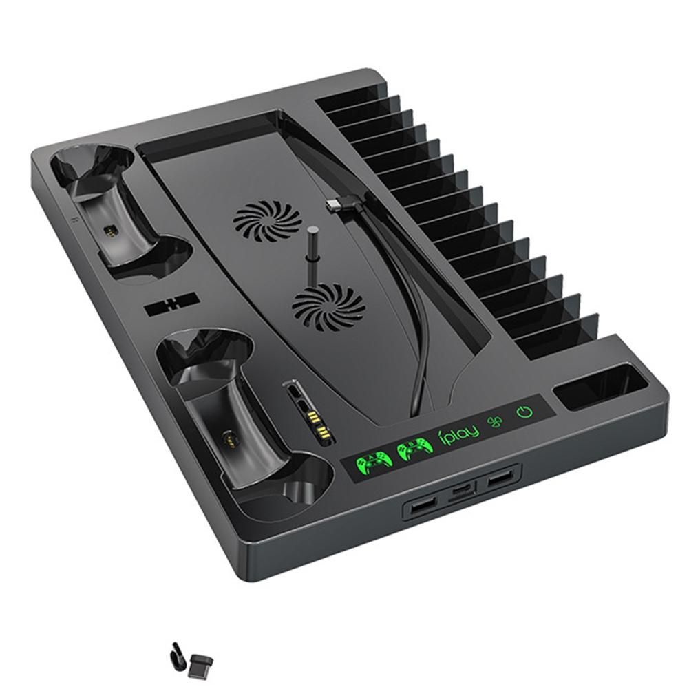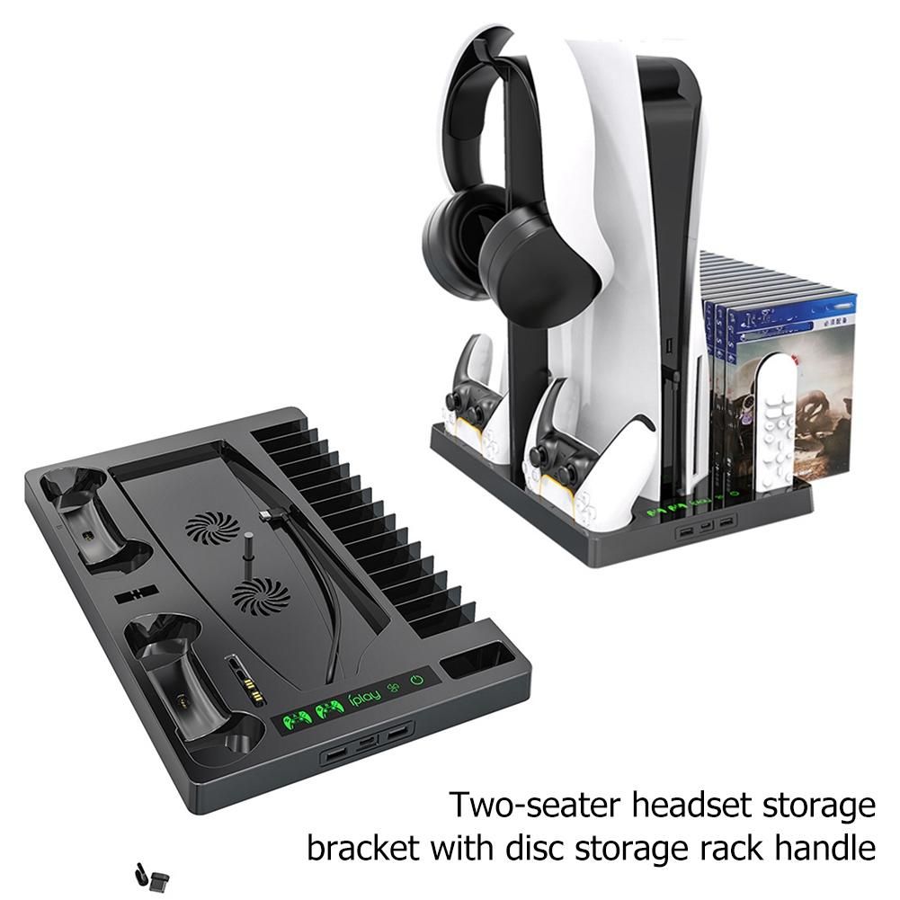5. Double fans cooling heat dissipation. Equipped with a game disk holder, can be placed 15 game disks. Game Console Multi-Functional Fan Cooling Stand Dual Charging Interface Dock for Disc Digital Edition Universal with Game Disc Handle Headphone Storage Rack Bracket Game Accessories