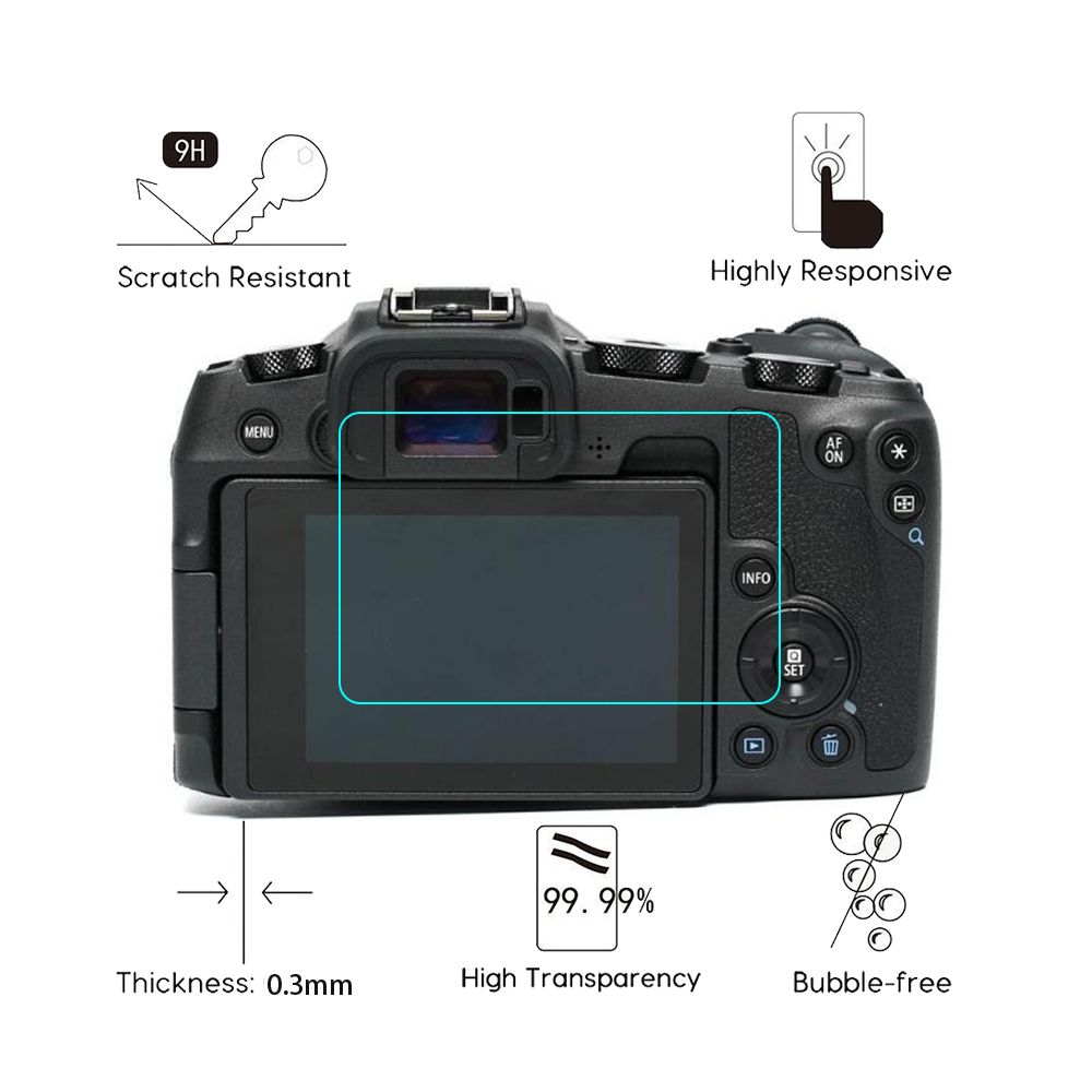 - 9H Hardness - Longer tempering time, which made the screen protector has a higher hardness. Prevents the camera screen from high impact drops, scratches such as keys and knives, scrapes, and bumps.