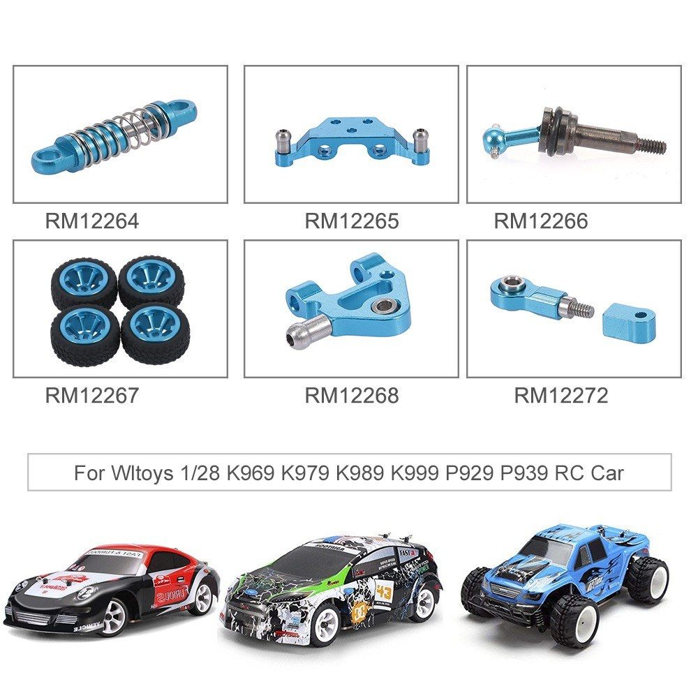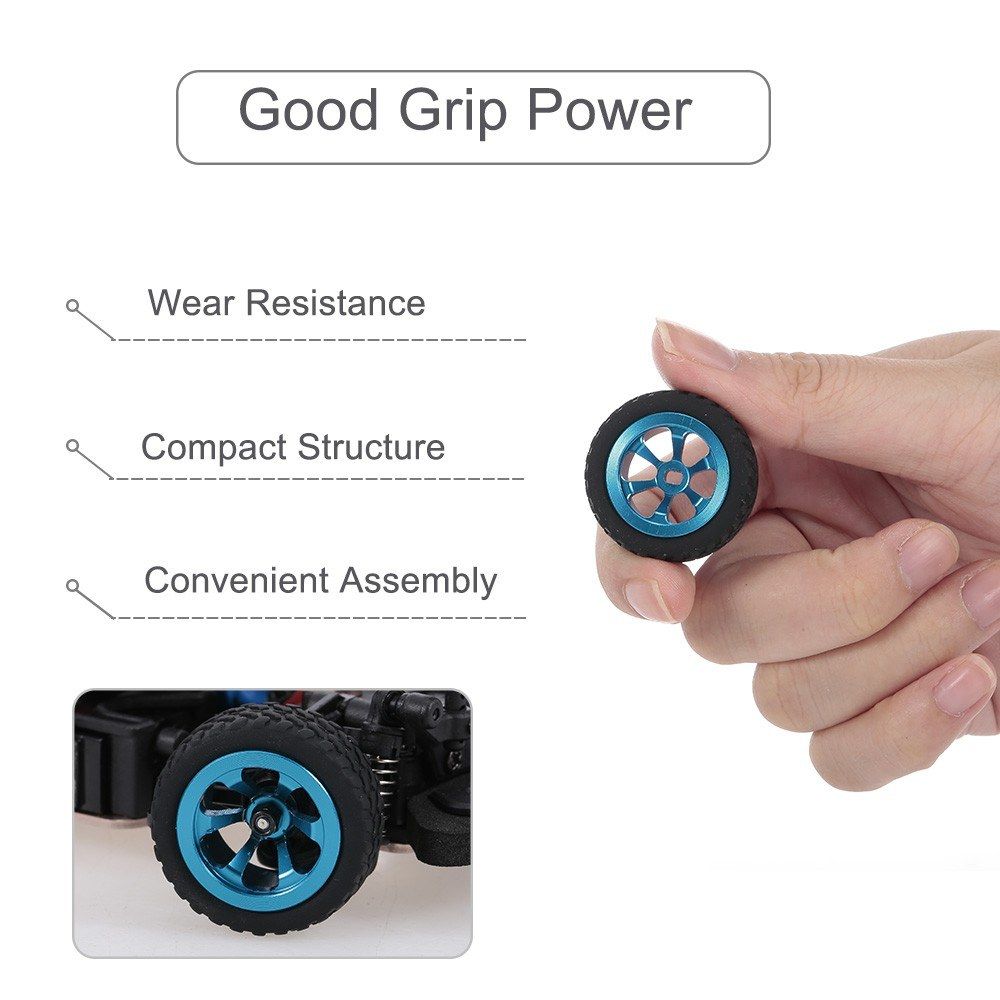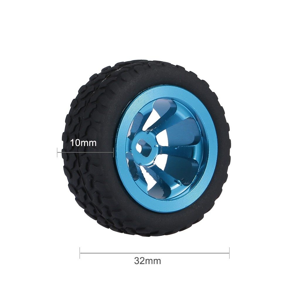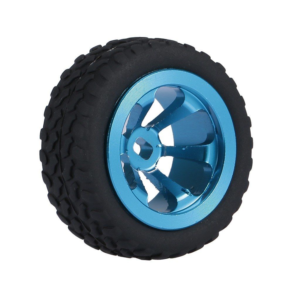 This tire set with stylish painted wheel hubs is professionally designed for 1/28 RC Car such as WLtoys K989 K999 K979. Made of high-quality Metal and Rubber, the tires are capable of effectively offering a stable driving even at a high-speed. Besides, they features exquisite craftsmanship and compact structure for anti-off capability of tires and convenient installation. They are a great spare parts for your 1/28 RC car.