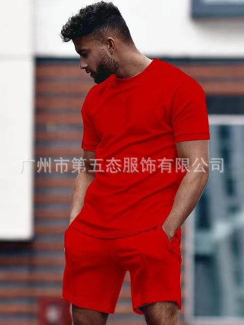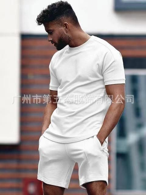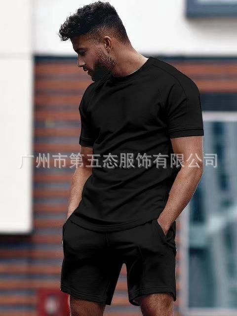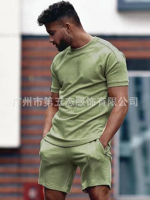 Buy Foreign trade spring and summer new cross-border casual men's short-sleeved T-shirt sports suit men ArmyGreen XXL in Nigeria