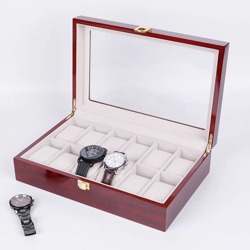 - Formica wooden 12 Slots Wrist Watch Display Box Storage Holder Organizer Windowed Case