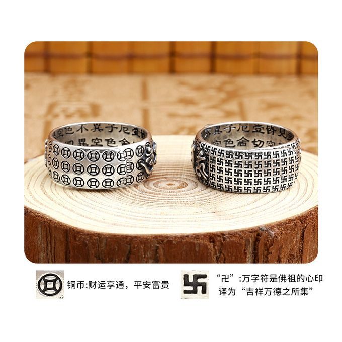 Product DescriptionAlong with the many ancient symbols inscribed onto the inside of this ring, it also has the Six Syllable mantra Om Mani Padme Hum.