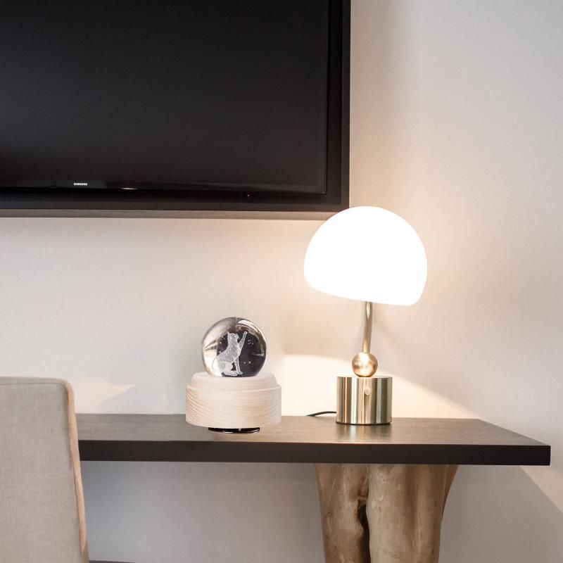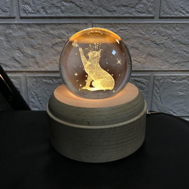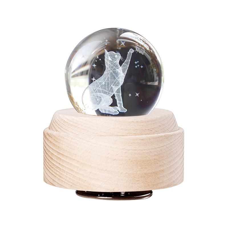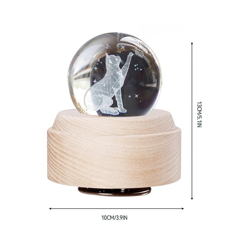 - This crystal ball music box is suitable for children and adults. When the music is turned on, the crystal ball with a wooden base will rotate.