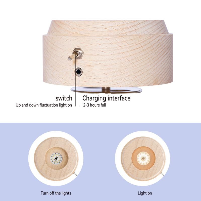 - The music box is equipped with LED soft light beads, which is very durable. Toggle the switch, the LED light will light up and can be used as a night light.