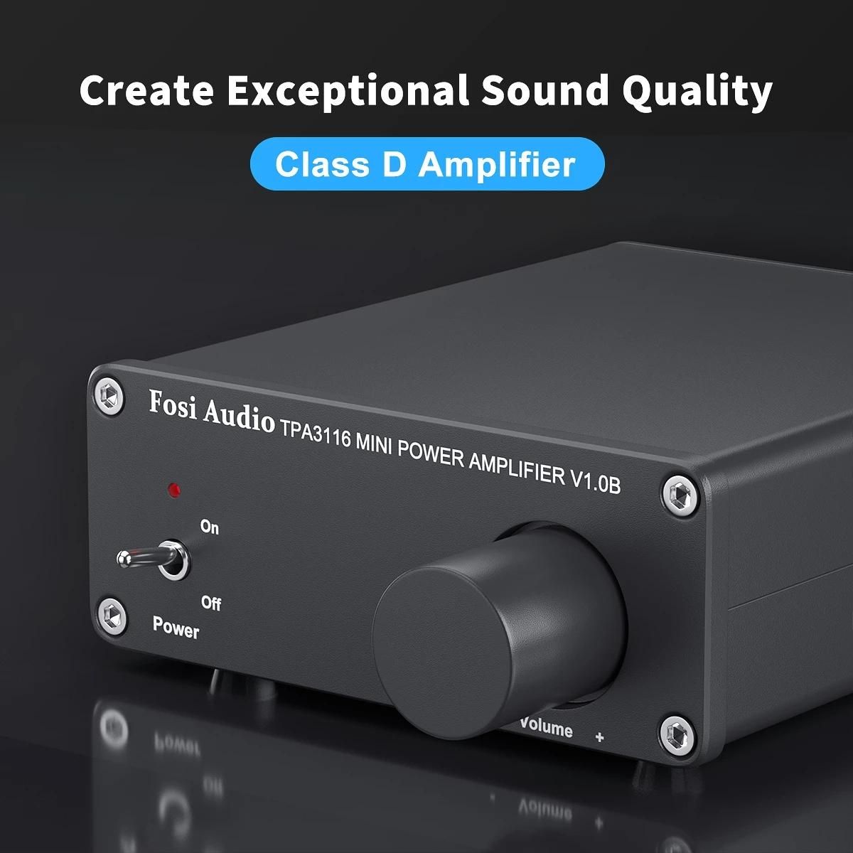 Simple compact design but practical and powerful, Adopt TI TPA3116D2 chip to get clear and clarity sound, no audible noise, dead silent when nothing is playing through it;