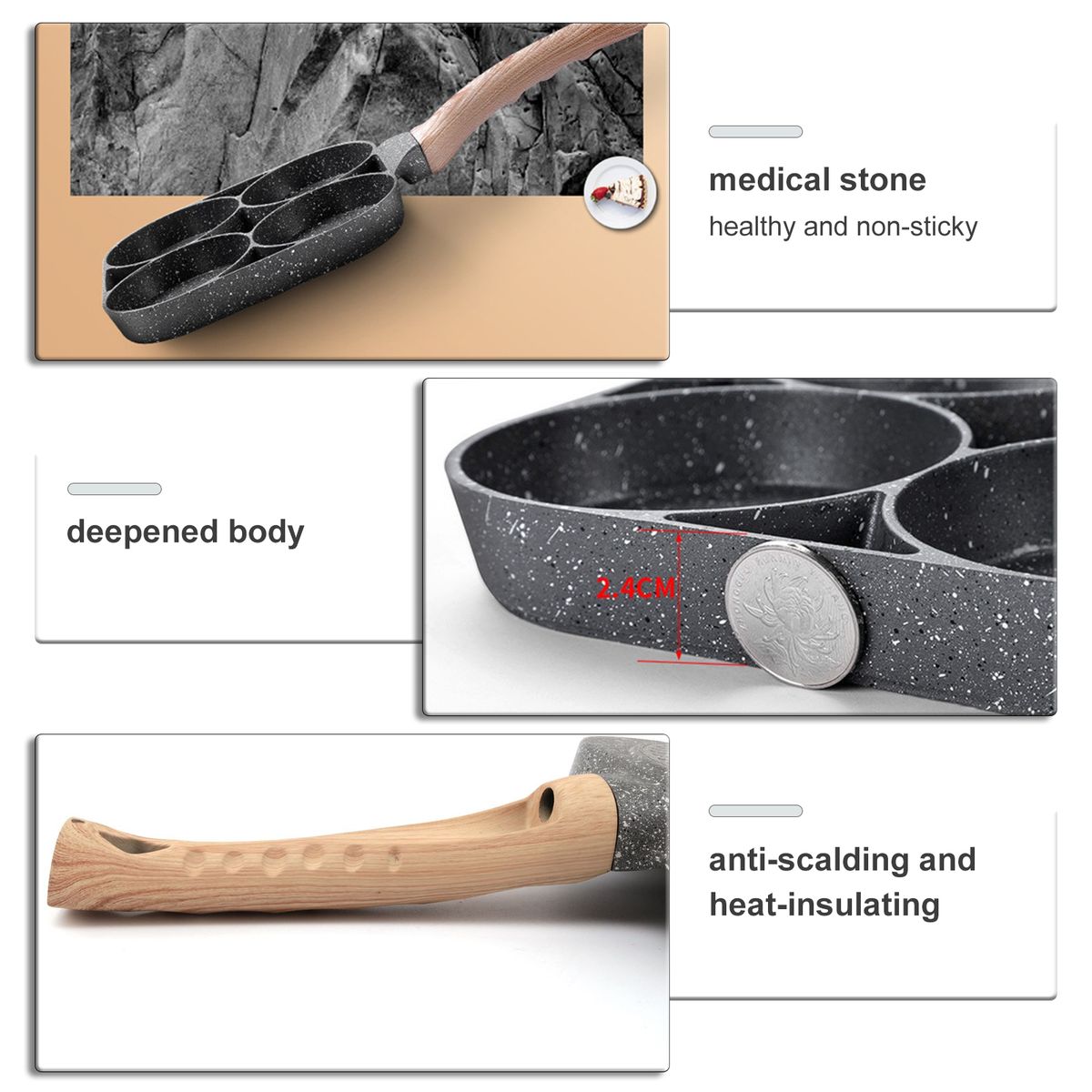 Four-cup design: You can fry four eggs or burgers with different flavors at the same time or fry four different foods, meeting the daily breakfast needs of your family.
