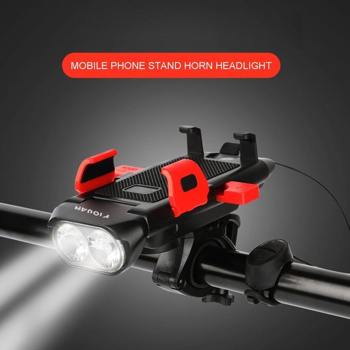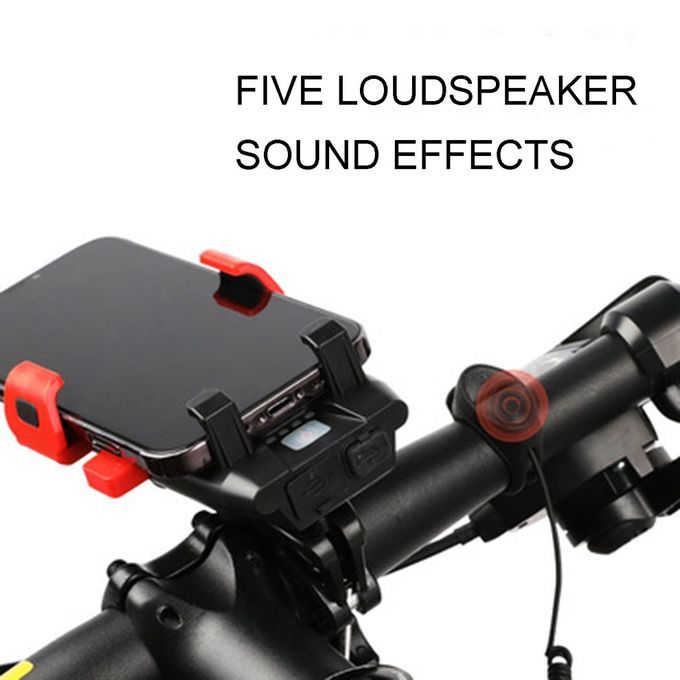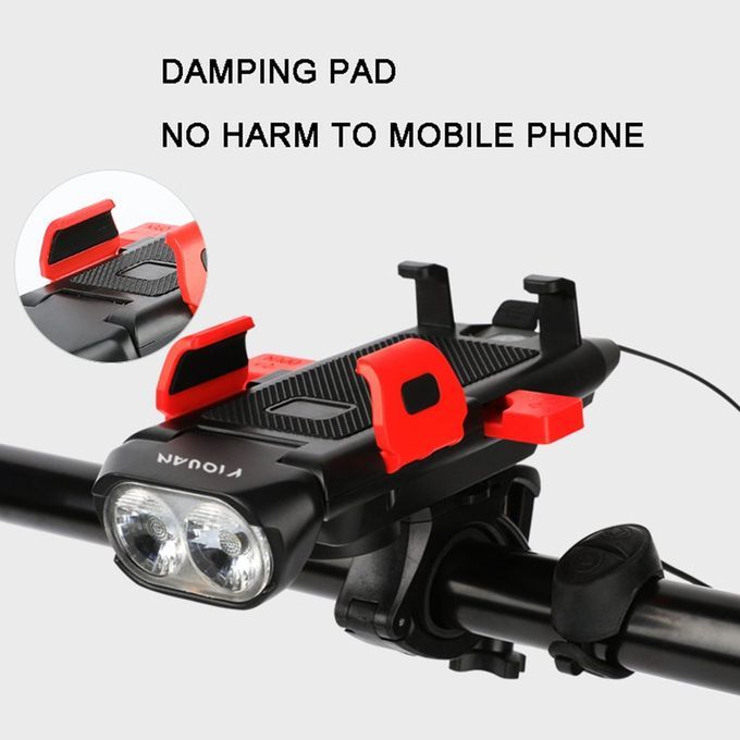 Features: 1. Bi y le lights: 2 T6 bi y le lights. 0 lumens adjustable angle headlights. This way you an lea y understand the night road onditions driving at 30km/h 2. Mobile power su ly: 3000 mA apa itor. You an use your phone. Or as a power for bi y les. 3. Mobile phone holder: adjustable in size. Suitable for 4~6.9 in h mobile phones. 4. Bi y le horn: 130 dB ele troni horn. This is a warning. There are 5 horns. Long press the horn on to swit h the sound. 5. Sho k pad: no damage to the mobile phone. The bra ket is equi ed with sho k absorber to effe tively prote t the mobile phone shell.