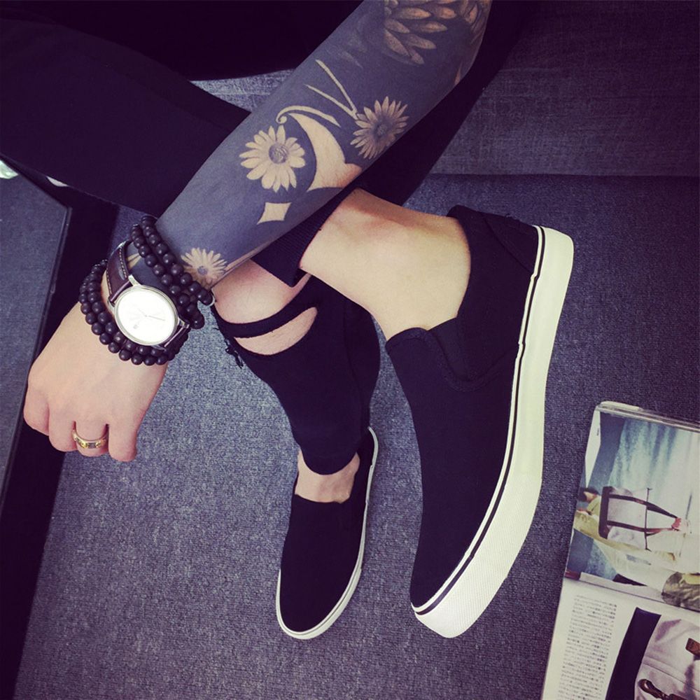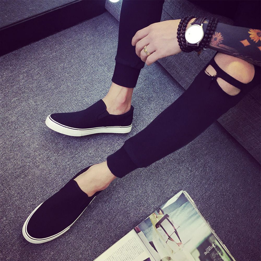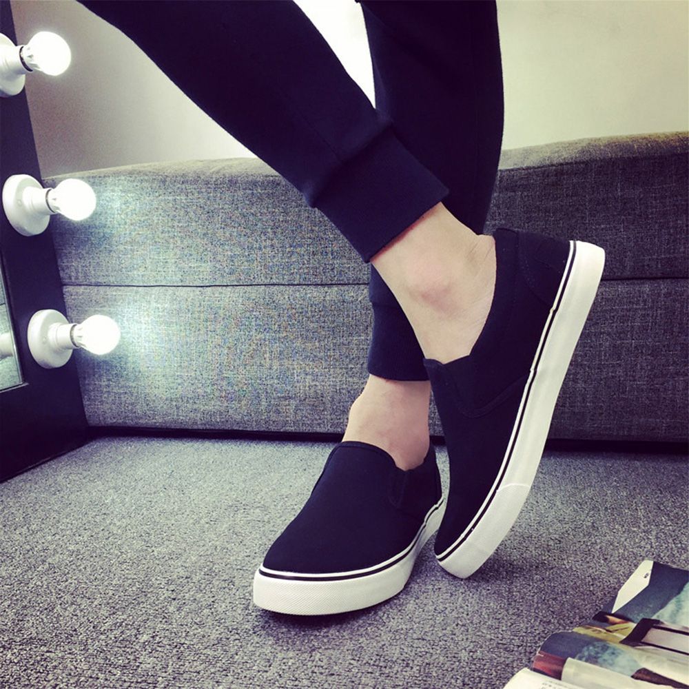 Name: Four Seasons Canvas Men's Lazy Black Shoes Slip-On Large Size Shoes White Sole;