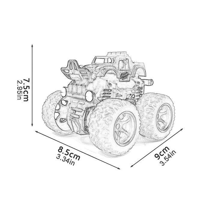 Features: 1. 360-degree stunt start: 360-degree stunt start design, powerful four-wheel drive and steering ontrol. 2. Easy to operate: No battery is needed, just push the fri tion trolley forward a little, and then it an last a long distan e. 3. Durable materials: This produ t is made of high-qu ty materials, durable, long servi e life, firm and stable in use. 4. Good anti-fall resistan e: suitable for all terrains of ars, non-slip, anti-vibration, strong grip, easy to tra gr , sand, wet mud and swamps, fea ess. 5. Gift: The stylish and unique design makes it a spe ial gift for hildren, also suitable for birthdays, hildren's day and other s.